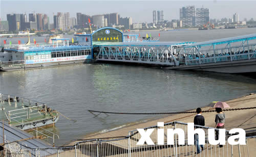 5月3日拍攝的武漢關新輪渡碼頭。“五一”期間,武漢關新輪渡碼頭投入使用,過江客運十分繁忙。武漢關輪渡碼頭擴建工程歷時約半年,大大增強了碼頭的抗浪能力,平緩的坡度更便于乘客上下。新華社發
