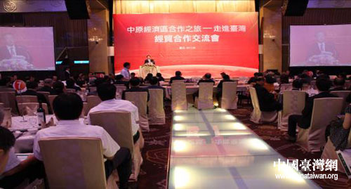 中國臺灣網6月20日臺北消息 6月17日下午,“中原經濟區合作之旅――走進臺灣”經貿合作交流會在臺北內湖舉行。河南省長郭庚茂,副省長史濟春出席交流會。鴻海集團董事長郭臺銘,世貿中心董事長王志剛,丹尼斯董事長王任生以及臺灣工商、經濟、教育界等人士參加交流會。
