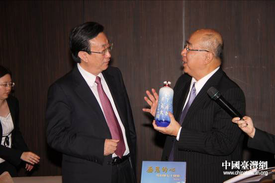 郭庚茂代表河南參訪團對吳主席百忙之中抽時間會見參訪團表示感謝。他在簡要介紹了河南省情后說,河南作為農業大省,糧食加工大省,對全國糧食產生和安全有著舉足輕重的作用。隨著兩岸關系深入發展,豫臺兩地交流交往日漸熱絡,僅去年兩地旅游互動人數就超過了10萬人(次)。此次活動為進一步加強豫臺間的交流合作帶來新契機。豫臺兩地同根同緣同祖,可謂是血脈相通,文化相同,相互之間聯系緊密。此次活動通過參觀考察,確實學到了很多東西,特別是親身感受到了民族親情和臺灣的發展。