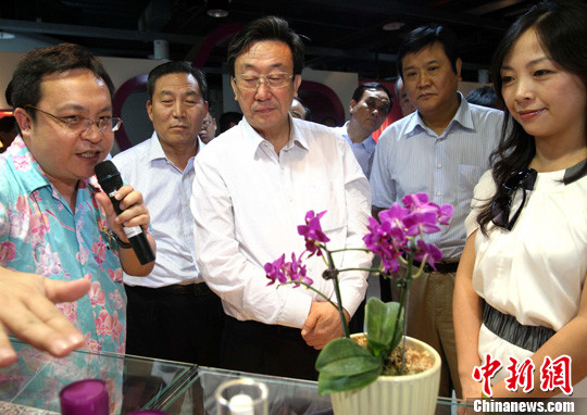 6月20日,河南省長郭庚茂率領“中原經濟區(qū)合作之旅---走進臺灣”參訪團在臺南市“蘭花生物科技園”考察。中新社發(fā) 趙振清 攝