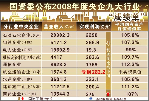 國資委公布2008年度央企九大行業(yè)“成績單”