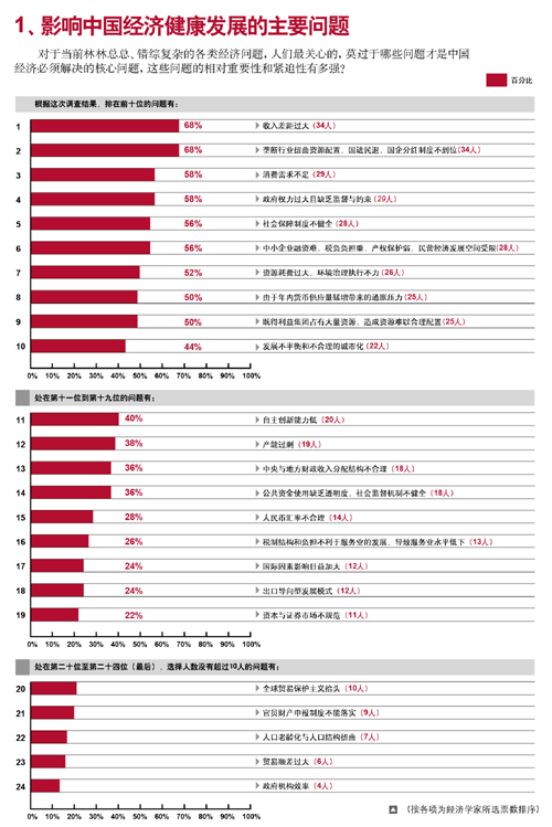 “影響當前中國經(jīng)濟健康發(fā)展的主要問題”問卷調(diào)查結(jié)果