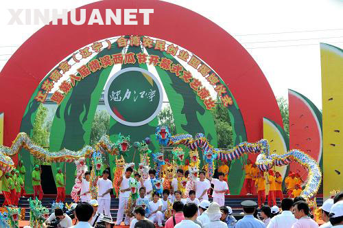5月30日,南京橫溪農民在臺灣農民創業園揭牌儀式上進行舞龍表演。