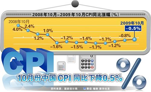 目前,除了主要經濟指標外,CPI、PPI兩個價格指標的降幅繼續收窄,也顯示出中國經濟處于持續回暖的局面。數據顯示,10月份我國CPI同比下降0.5%,比上月降幅縮小0.3個百分點;環比下降0.1%,沒有繼續8月份以來環比回升的趨勢。