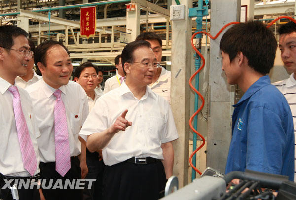 溫家寶非常關心企業生產經營情況。在湖南考察的兩天多時間里,他先后到重型機械、風電設備、電子信息、汽車、輕紡等行業的10家企業,每到一家企業,都和職工親切交談,詳細了解企業生產經營情況。得知這些企業面對危機迎難而上,取得較好的經營業績,溫家寶十分高興。他反復強調,應對國際金融危機,歸根結底要靠科技,靠人才,靠發明創造,靠專利產品。只要能夠做到這四點,我們就有取之不盡、用之不竭的動力,就能戰勝困難,路子會越走越寬。