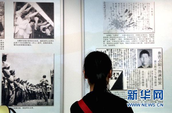 8月15日,參觀者觀看《不能忘卻的歷史》展覽。當日是中國人民抗日戰爭勝利65周年紀念日,《不能忘卻的歷史——紀念中國人民抗日戰爭暨世界反法西斯戰爭勝利65周年特別展》在侵華日軍南京大屠殺遇難同胞紀念館開幕。 新華社發(王新 攝) 新華網南京8月15日電(記者石永紅)今年是抗戰勝利65周年。8月15日上午,《不能忘卻的歷史》照片展在侵華日軍南京大屠殺遇難同胞紀念館開幕,展期一個月。 展覽內容分為三部分:(一)日本侵華戰爭期間,從中國華北各地強擄數十萬名中國勞工到日本的罪行;(二)日本殖民統治臺灣50年的罪行;(三)日本占領南京期間的罪行。數百幅珍貴的歷史照片,作為見證歷史的最有力證據展現在人們面前。 展覽由日本旅日華僑中日交流促進會、日本銘心會、神戶南京銘心會、長崎日中友好希望之翼、大阪府立學校在日外國人教育研究會,以及大陸花岡和平友好基金、中國受害勞工聯誼聯合會,臺灣人民文化協會等多家民間團體共同主辦。 |