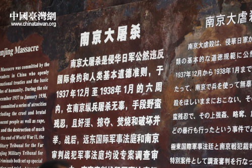 用中、英、日三種語言講述南京大屠殺的文字。這三種文字也出現在該紀念館的任何一張圖片上。