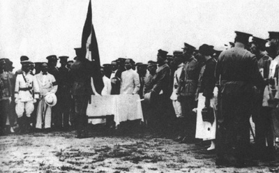 圖為孫中山授旗的情景。