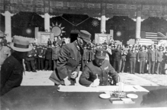 中國受降主官孫連仲上將在“受降主官”下簽字 圖片來源:千龍網