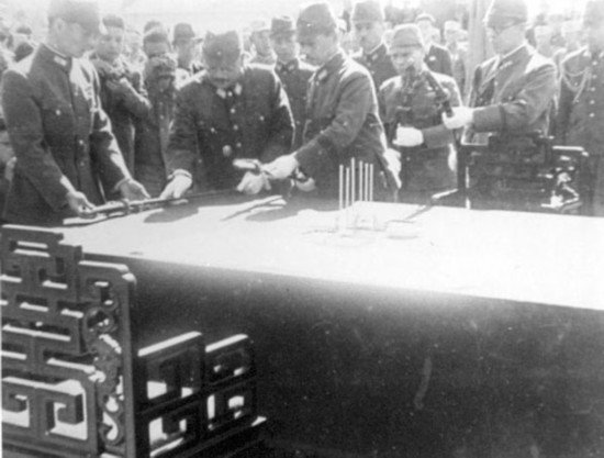 日軍就位待命簽降書、獻刀 圖片來源:千龍網