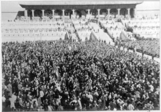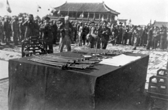 1945年10月10日,日軍在北平太和殿前的投降儀式 圖片來源:千龍網
