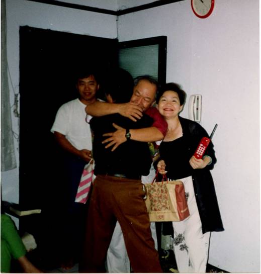 午夜,從墓地回到臺北永和秀朗路的大姐家時,很意外又驚訝的發現大哥帶著侄子(忠翰)站在巷口,慈母的逝去及十年的兩地分離,我們不由萬分感慨,悲從中來,大哥緊緊擁抱著我,兄弟倆放聲大哭一場。原來大哥一家人為慈母送完殯后就回美國加州去了,后來聽說我和金鳳被臺灣當局最后放行后,他竟然再度跨越重洋返回臺灣,為了就是想見見遠在北京的四弟和弟媳金鳳。