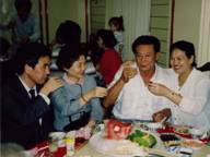 臺灣人的熱情好客早已享有盛美譽,在臺灣逗留的兩個月期間,我的大姐充當我的臨時秘書兼總管,大姐把所有親友的邀宴一一有序排到日程表上,從此我們就出席了總共八十九場令人激動、頭昏目眩、興奮不已絕極為熱情又慘烈的戰斗。