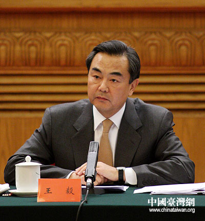中臺辦、國臺辦等單位30日下午在京舉行學習貫徹胡錦濤總書記去年底對臺重要講話座談會。圖為中臺辦、國臺辦主任王毅在座談會上講話。(中國臺灣網 鐘寶華 攝)