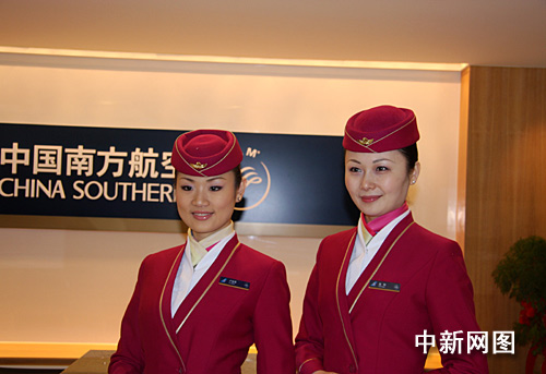 1月15日,大陸南方航空公司在臺北正式成立辦事處,成為首家在臺灣掛牌運營的大陸企業。圖為開業揭幕儀式典禮上的南航空姐。中新社記者 陳立宇 攝