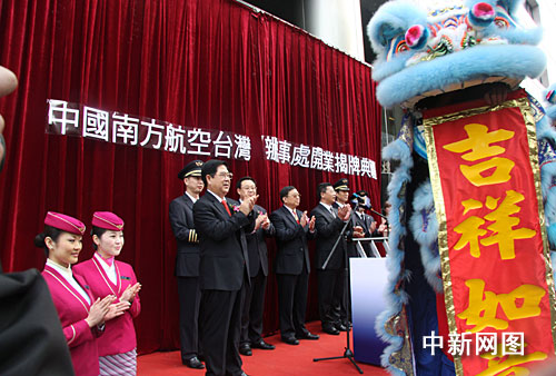 1月15日,大陸南方航空公司在臺北正式成立辦事處,成為首家在臺灣掛牌運營的大陸企業。圖為開業揭幕儀式典禮。中新社記者 陳立宇 攝 |