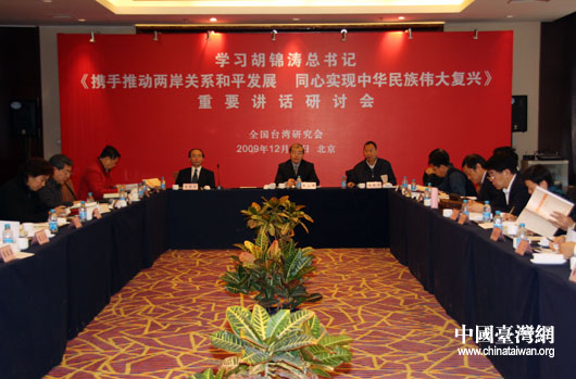 中國臺灣網12月17日北京消息 今天上午,全國臺灣研究會在此間召開研討會,來自北京、上海、廈門等全國各大高校、研究機構的二十余位知名臺灣問題專家學者與會,就學習胡錦濤總書記《攜手推動兩岸關系和平發展 同心實現中華民族偉大復興》重要講話進行了探討和交流。