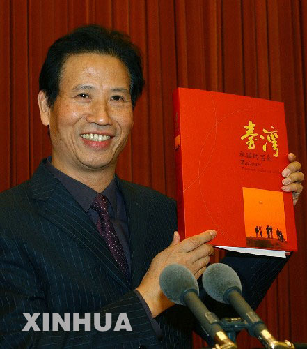 10月24日,紀念臺灣光復60周年暨《臺灣,祖國的寶島》大型彩色畫冊首發式在北京人民大會堂舉行。畫冊由“山川秀美,風情萬種”、“同根同宗,血脈相連”、“經濟外向,產業轉型”等五部分組成,展現了寶島臺灣的歷史脈絡、文化傳承、經濟發展,真實反映了海峽兩岸不可分割的歷史淵源和血脈親情,以及兩岸民眾共同期盼振興中華的美好愿望。 這是與畫冊同時發行的紀念郵品。 新華社記者攝