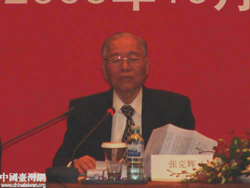 全國政協副主席、臺盟中央主席張克輝在會上講話