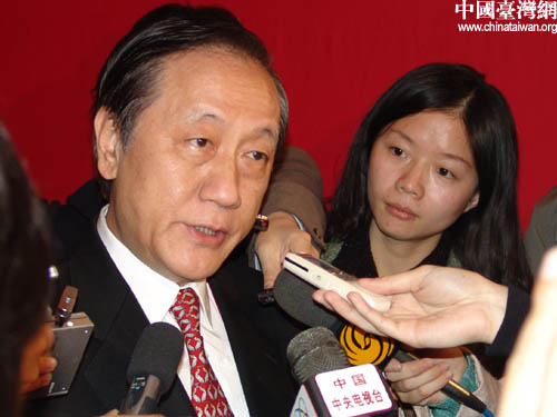 臺灣新黨主席郁慕明會后接受記者采訪