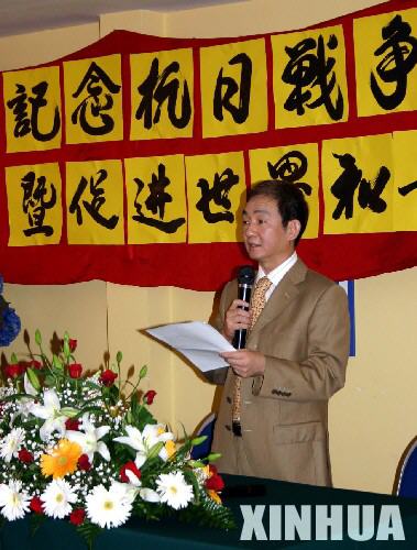 8月28日,在意大利首都羅馬,中國駐意大利使館公使銜參贊張利民在旅意華人華僑舉辦的紀念抗日戰爭勝利60周年大會上發表講話。 新華社記者楊愛國攝