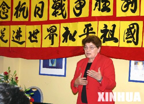 8月28日,在意大利首都羅馬,意中友協主席曼齊尼女士在旅意華僑華人舉辦的紀念抗日戰爭勝利60周年大會上發表講話。 新華社記者楊愛國攝