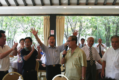 在參觀“紀念‘八·一三’淞滬抗戰70周年文物文獻展”后,上海黃埔同學會常務理事黃浪萍指揮大家唱起了當年鼓舞中國軍民奮勇殺敵的抗戰歌曲《中國不會亡》:“中國不會亡,你看那民族英雄謝團長;中國一定強,你看那八百壯士孤軍奮守東戰場……”。歌聲激昂,兩岸黃埔同學的思緒仿佛又回到那炮火紛飛的抗日戰場。