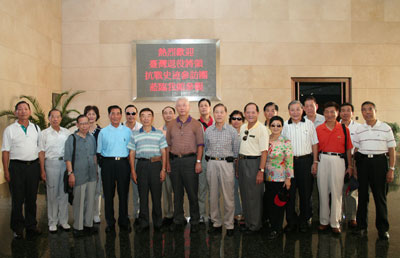 在“八·一三淞滬抗戰中國軍隊指揮系統表”和淞滬抗戰示意圖,馮玉祥、張治中、蔡廷鍇、蔣光鼐等抗日名將的戎裝像前,在毛澤東與蔣介石在重慶舉杯慶祝中國抗日戰爭勝利的照片前,兩岸黃埔同學仔細觀看,久久凝思。在蘇州河畔的四行倉庫保衛戰遺址,抗日英雄謝晉元將軍之子謝繼民激動地講述“八百壯士”誓死固守,奮勇殺敵的英雄事跡,使大家感奮不已。
