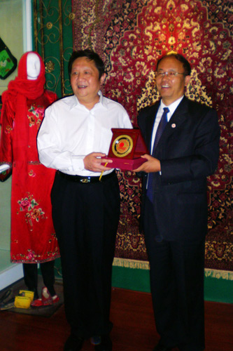 青海民族大學李生榮副校長(右)向我會李寧秘書長(左)贈送紀念品