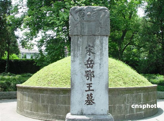 岳飛墓通稱岳墳。在岳王廟中線上。墓道兩側(cè)排列明朝墓廟重建時的石翁仲、石虎、石馬、石羊。岳飛墓前展示的,是歷史的判決,人心的向背,正義的不可戰(zhàn)勝。 岳飛墓墓門下有四個鐵鑄人像,反剪雙手,面墓而跪,即陷害岳飛的秦檜、王氏(檜妻)、張俊等四人。跪像背后墓門上有楹聯(lián)“青山有幸埋忠骨,白鐵無辜鑄佞臣”。墓道兩側(cè)排列明朝墓廟重建時的石翁仲、石虎、石馬、石羊。墓闕門兩向墓的鐵柵內(nèi),有作反翦雙手下跪狀的秦檜、王氏、萬俟覘、張公俊四奸鐵鑄像。正如墓闕門楹聯(lián)所說的,[正邪自古同冰炭;毀淮于今判偽真];[青山有幸埋忠骨;白鐵無辜鑄佞臣]。岳飛墓前展示的,是歷史的判決,人心的向背,正義的不可戰(zhàn)勝。