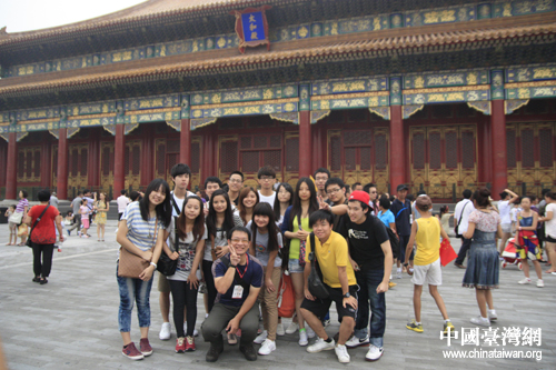 中國臺灣網8月12日北京消息 淺淺海峽,濃濃情誼,兩岸學子,心手相連。8月11日,由中國宋慶齡基金會和臺灣“十大杰出青年基金會”共同組織的臺灣青年學生交流團,參觀了故宮博物院、景山公園和天壇。在結束五天的北京參訪之旅后,他們將前往江南和西安,繼續開展以“歷史為根、文化為魂”為主旨的交流活動。