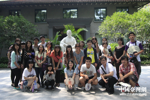 8月14日,由中國宋慶齡基金會和臺灣“十大杰出青年基金會”共同組織的“臺灣青年學生交流團”活動開始參訪上海。圖為交流團在上海宋慶齡故居雕像前合影留念。(中國臺灣網 孟雅詩 攝)