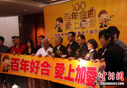 10月6日,辛亥革命百年紀念之際,為喚醒兩岸民眾共同的歷史記憶與音樂情懷,臺灣《旺報》特別策劃了跨海峽、跨媒體、跨族群的“百年好合——愛上加愛”兩岸百年金曲網絡票選活動。期能選出百年來最深植于華人記憶中的金曲。圖為活動啟動儀式。中新社發 陳立宇 攝
