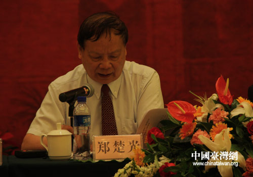 湖北省政協副主席鄭楚光在座談會上發言。(中國臺灣網 李丹 攝)