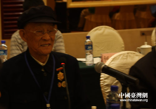 94歲的黃埔軍校第17期預科學員劉一曙在座談會上發言。(中國臺灣網 李丹 攝)