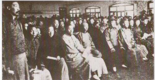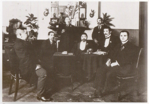 1911年12月26日,孫中山在上海召開同盟會重要干部會議,商討組織臨時政府方案。圖為孫中山(左二)與黃興(前右三)等人合影