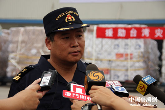 海關(guān)人士在啟運(yùn)儀式現(xiàn)場(chǎng)接受媒體采訪。(中國(guó)臺(tái)灣網(wǎng) 鐘寶華 攝)