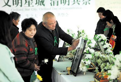 昨日上午,湖南革命陵園,市民正在擦拭逝去家人的遺像。當日是清明節,長沙市各墓園迎來了祭掃高峰。 邱曉峰 攝