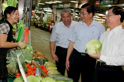 危朝安考察臺北果菜批發市場與菜農親切交談(圖)
