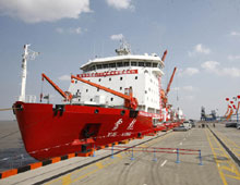 南極科考船雪龍號首架自備載重直升機亮相(圖)