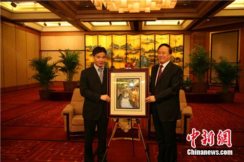 中新網南京3月28日電(記者 朱曉穎)28日晚,中共江蘇省委副書記朱善璐在南京金陵飯店會見了中國國民黨青年工作總會“辛亥革命百年訪問團”一行。