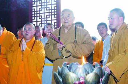 車來停穩,同樣便裝僧服的星云法師邁出車門,與永信合掌施禮。一爐檀香裊裊前導,永信伸手攙著老和尚走向山門,法器一聲清鳴,少林僧眾行禮如儀:“恭迎大師!”