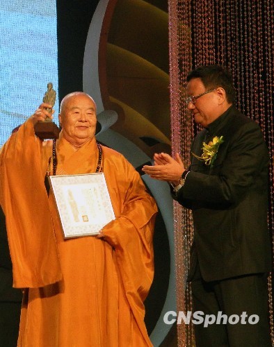 1月13日晚,“智慧東方——2009中華文化人物頒授典禮”在江蘇南京舉行,星云法師獲得“中華文化人物”終身成就稱號。