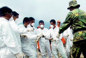 臺當局“衛(wèi)生署長”楊志良說,當災民們看到志工及臺軍官兵都戴上口罩時,或許心里會覺得怪怪的,但還請大家見諒,因為這也是為了保護災民。由于甲型H1N1流感好發(fā)于年輕人,戴上口罩,這也讓救災的年輕士兵多了一層保障。
