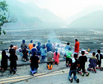 白幡飄飄,幸存的小林人看著消失的家,無不痛徹心扉。(芮文輝)