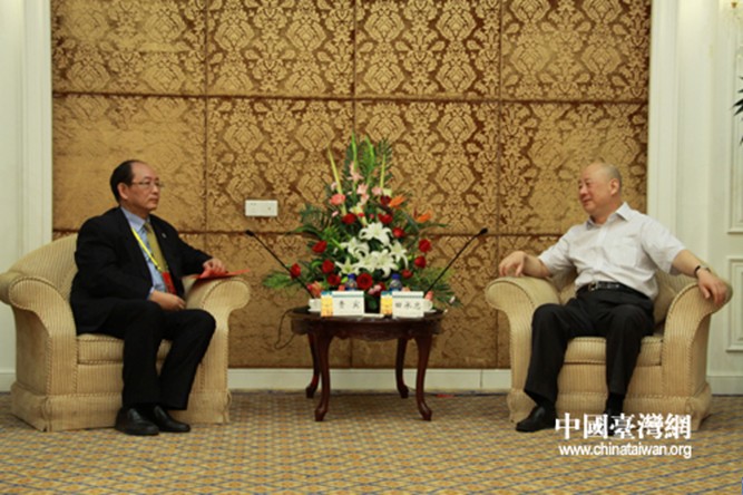湖北省副省長田承忠與部分辛卯年世界華人炎帝故里尋根節(jié)嘉賓座談(中國臺灣網(wǎng) 徐維彬 攝)