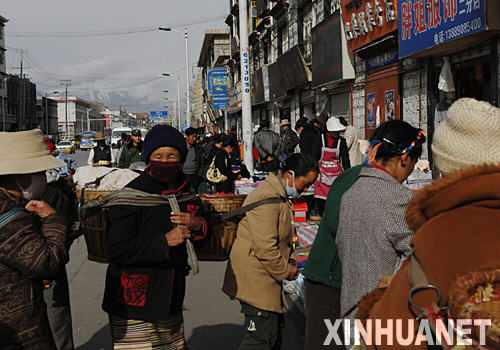 4月6日,市民在拉薩市北京東路購買日用品。截至目前,在拉薩“3·14”事件中受損的900多商戶,已有500多戶恢復營業。西藏自治區政府將采取在一定時期內為受損商戶提供無息貸款或政府貼息貸款等優惠政策,讓受損商戶盡快恢復生產生活。 新華社記者 索朗羅布 攝