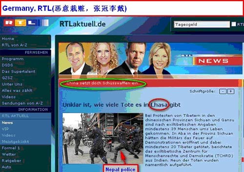 更讓人不可思議的是,有的媒體還移花接木。18日,德國一家報紙網站將一張西藏公安武警解救被襲漢族人的照片說成是“在抓捕藏人”。有的把發生在別國的事情說成是在中國拉薩發生的。美國一家電視臺網站刊登圖片稱,“中國軍人將藏人抗議者拉上卡車”,可圖片中出現的人物卻是印度警察;德國一家電視臺在報道中將早先尼泊爾警察抓捕藏人抗議者說成是“發生在西藏的新事件”。此外,在西方某些媒體的報道中,還充斥著“軍事管制”、“藏人被殺數百人”等“妖魔化”中國的話語和字眼。