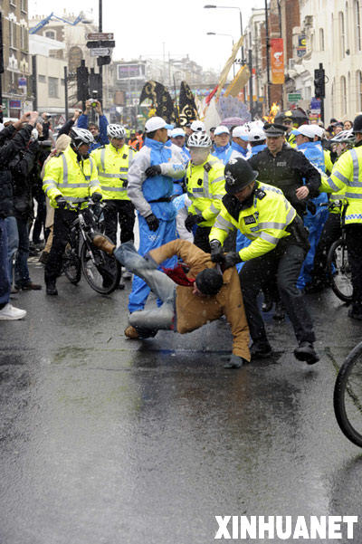 4月6日,英國倫敦警方逮捕了極少數企圖干擾破壞奧運圣火傳遞的“藏獨”分子。 新華社記者 戚恒 攝