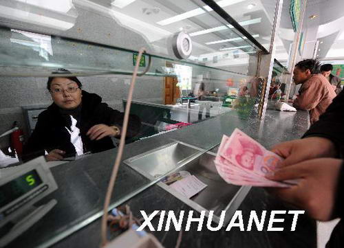 銀行職員小尼瑪(左)在為顧客辦理匯款業。新華社記者 覺果 攝